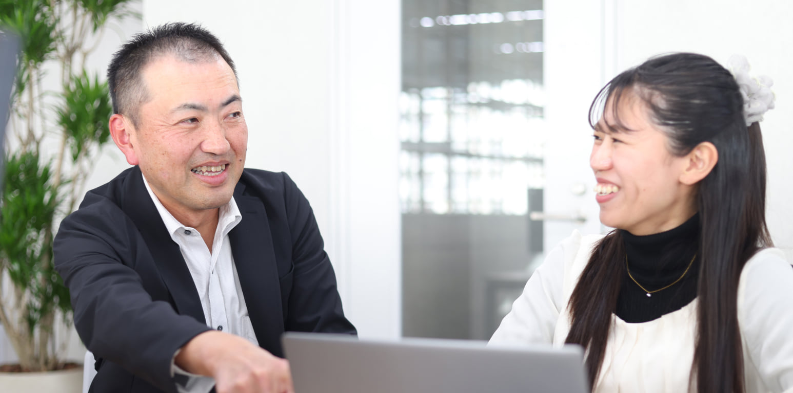 研修や実務ではいつでも先輩社員に相談できる環境です。また、定期的な面談で進捗を確認し、一人ひとりのペースに合わせた指導を行う個別フォローを実施しています。